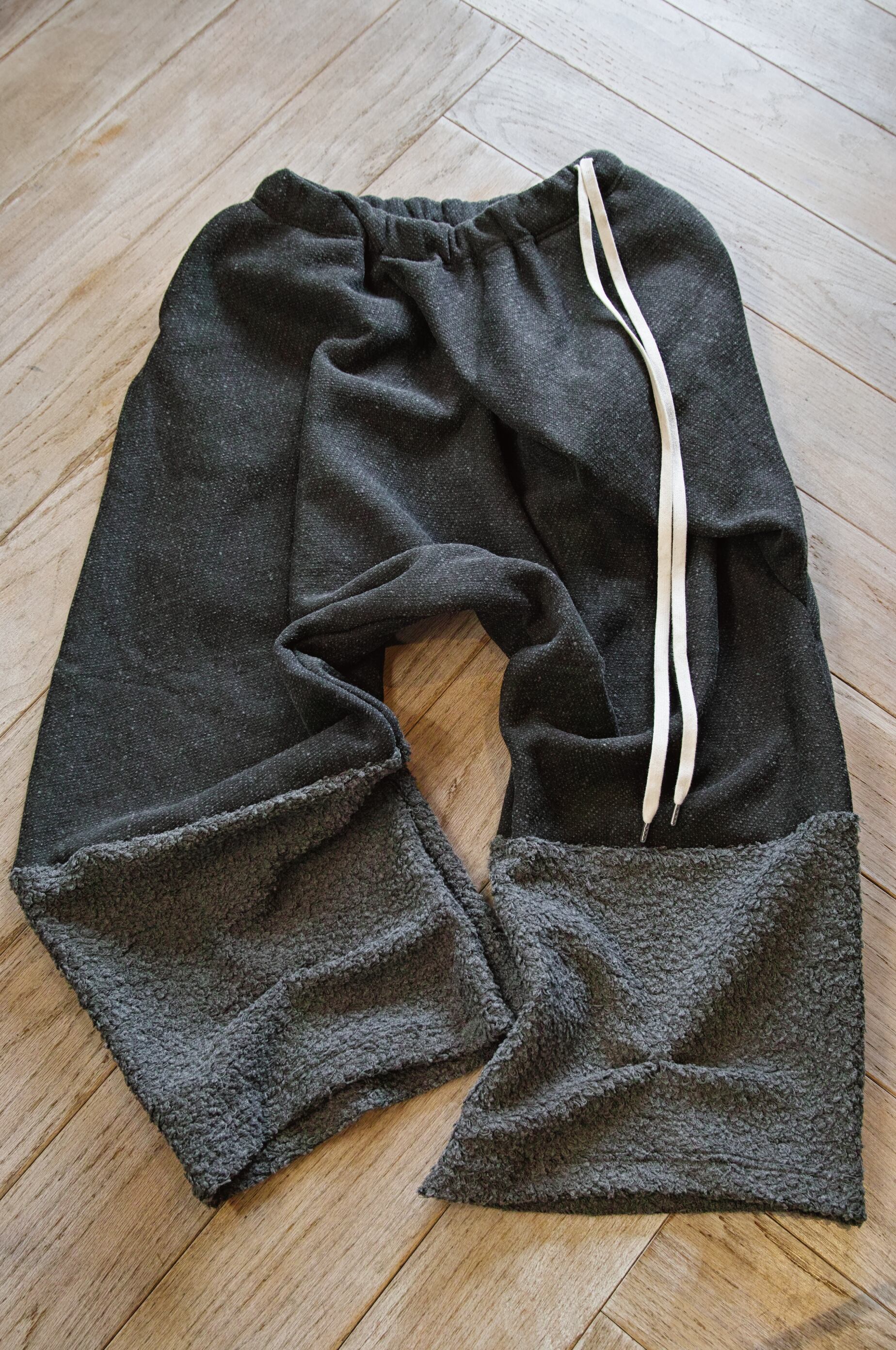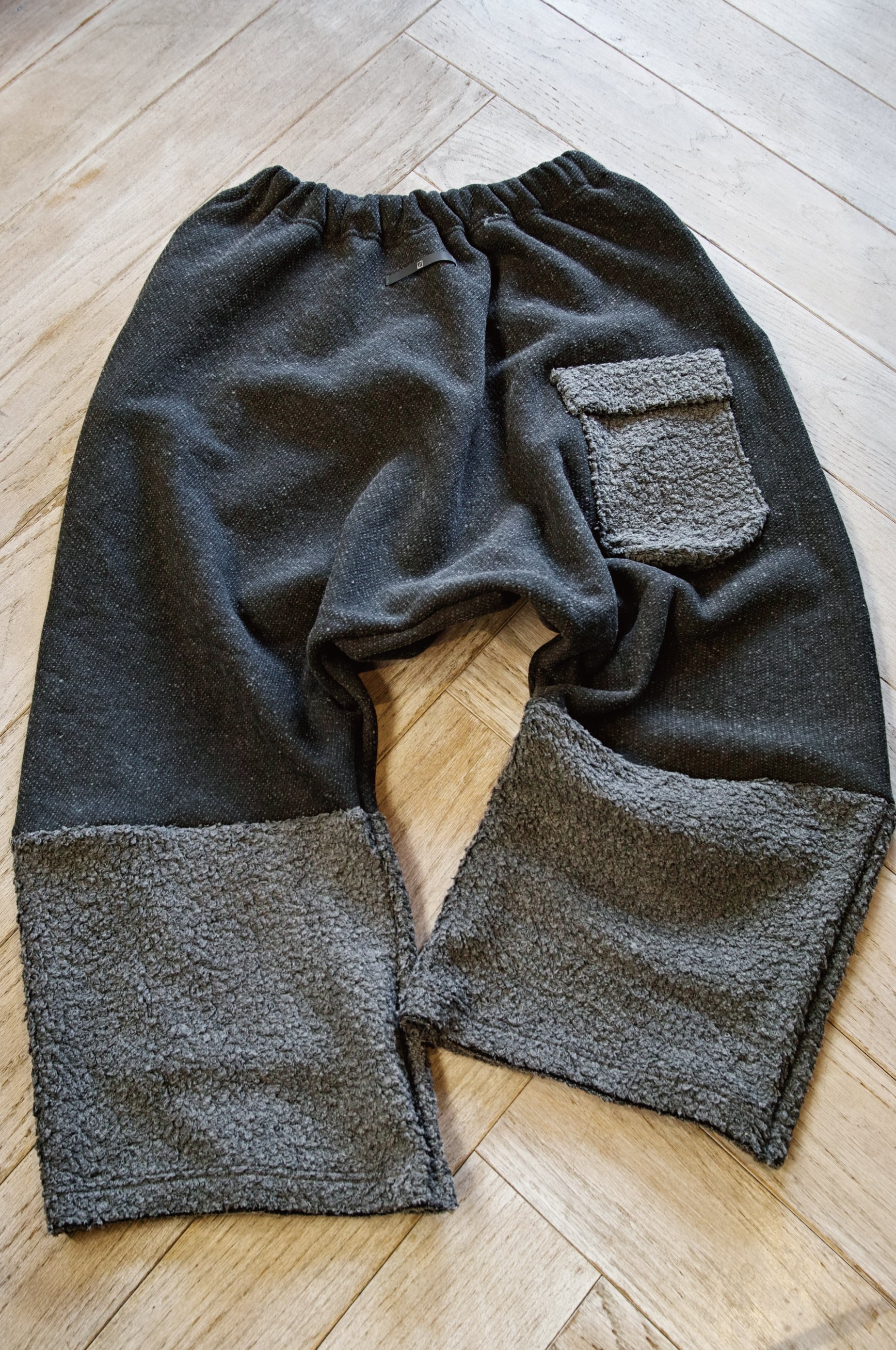 『生物の皮膚に接ぎ目は存在しない』という構想の基、たった1枚の布から有機的なフォルムを構成した S/STERE 2012 FW シーズンをはじめにアップデートが繰り返されている定番デザインからスーパーワイドスウェットパンツが登場。