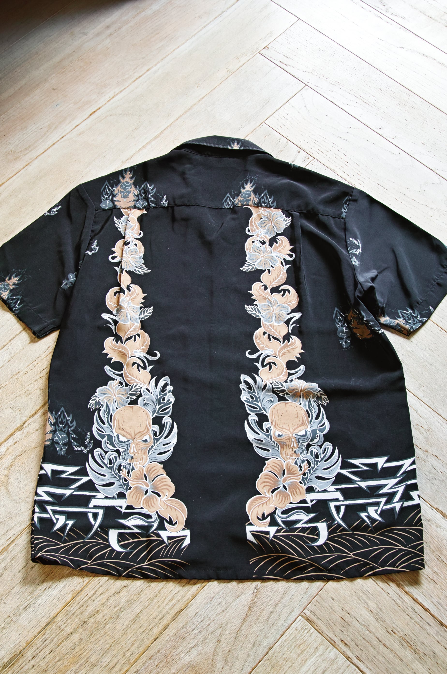 RED DRAGON by kennington ; VINTAGE ALOHA SHIRTS [BLACK×SKULL&FLOWER]