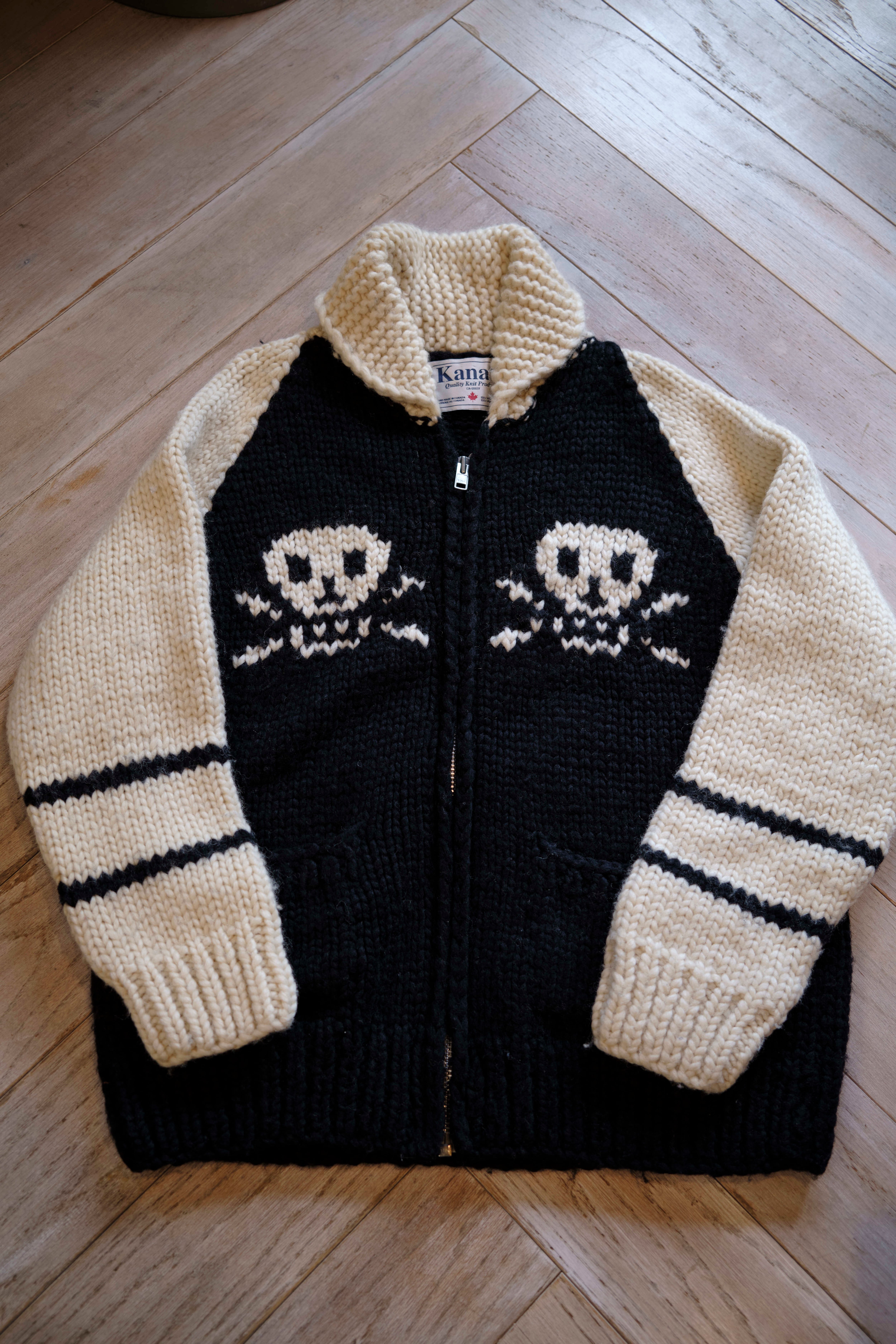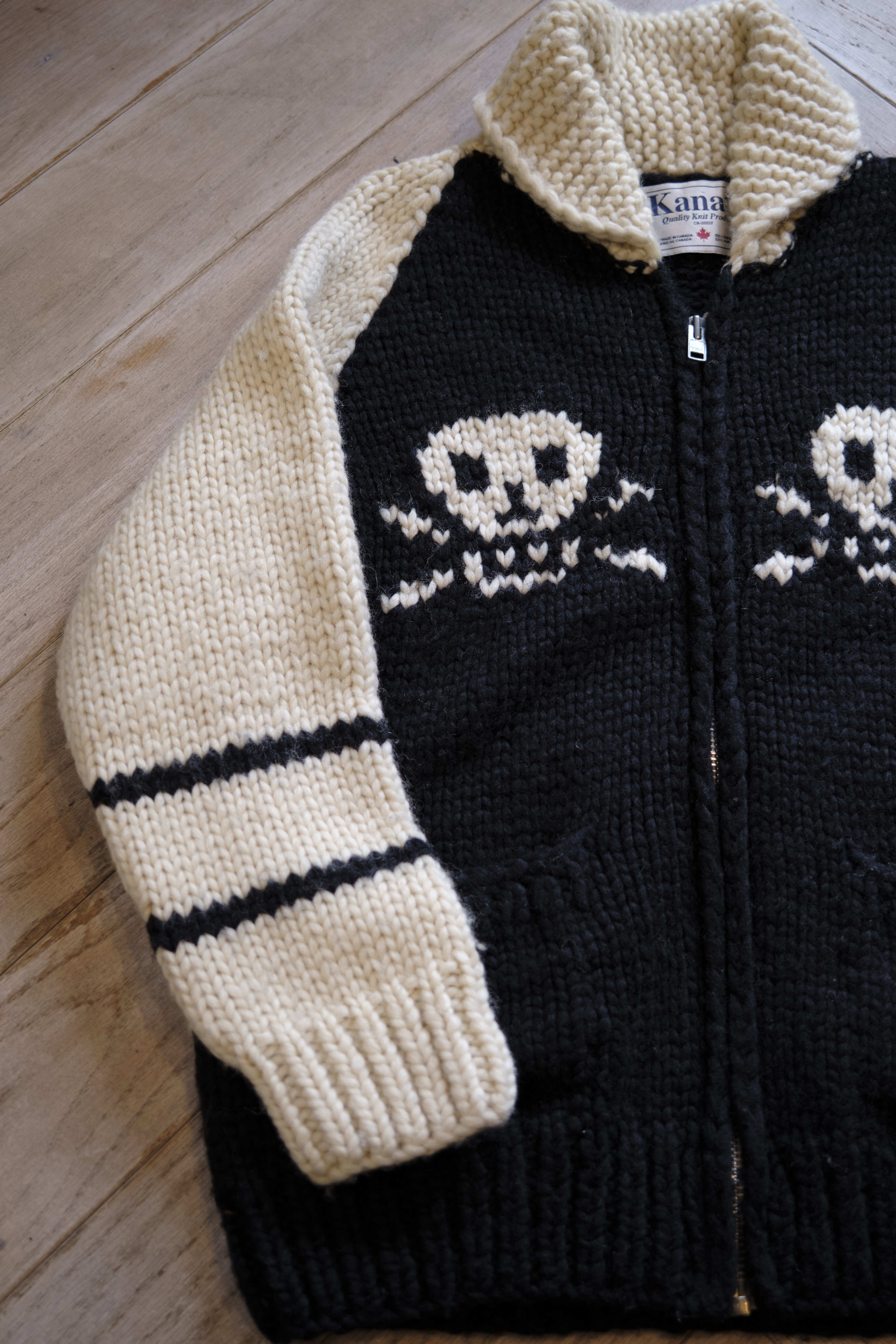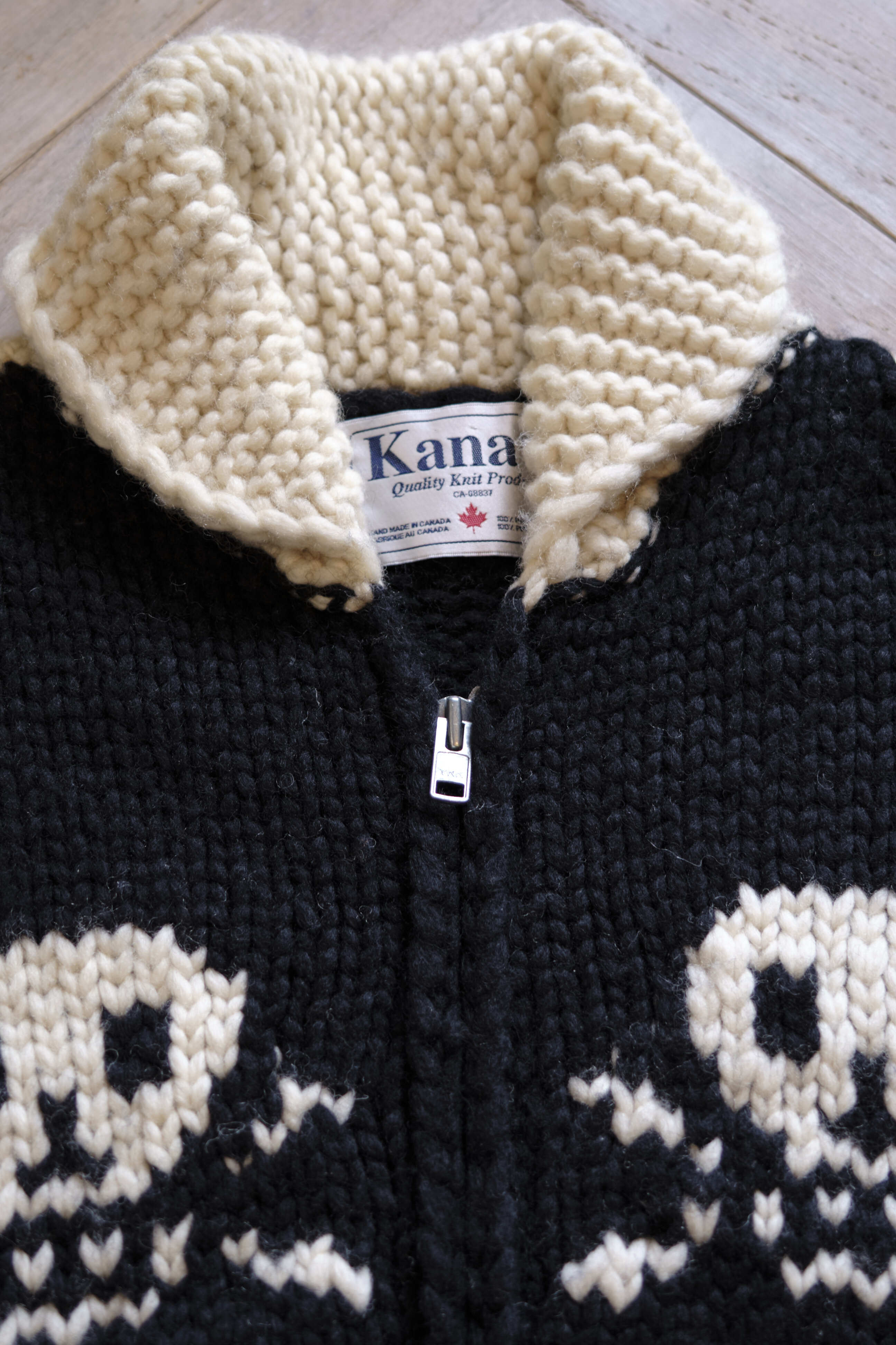 KANATA ; ZIP UP COWICHAN SWEATER [BLK×IVR]