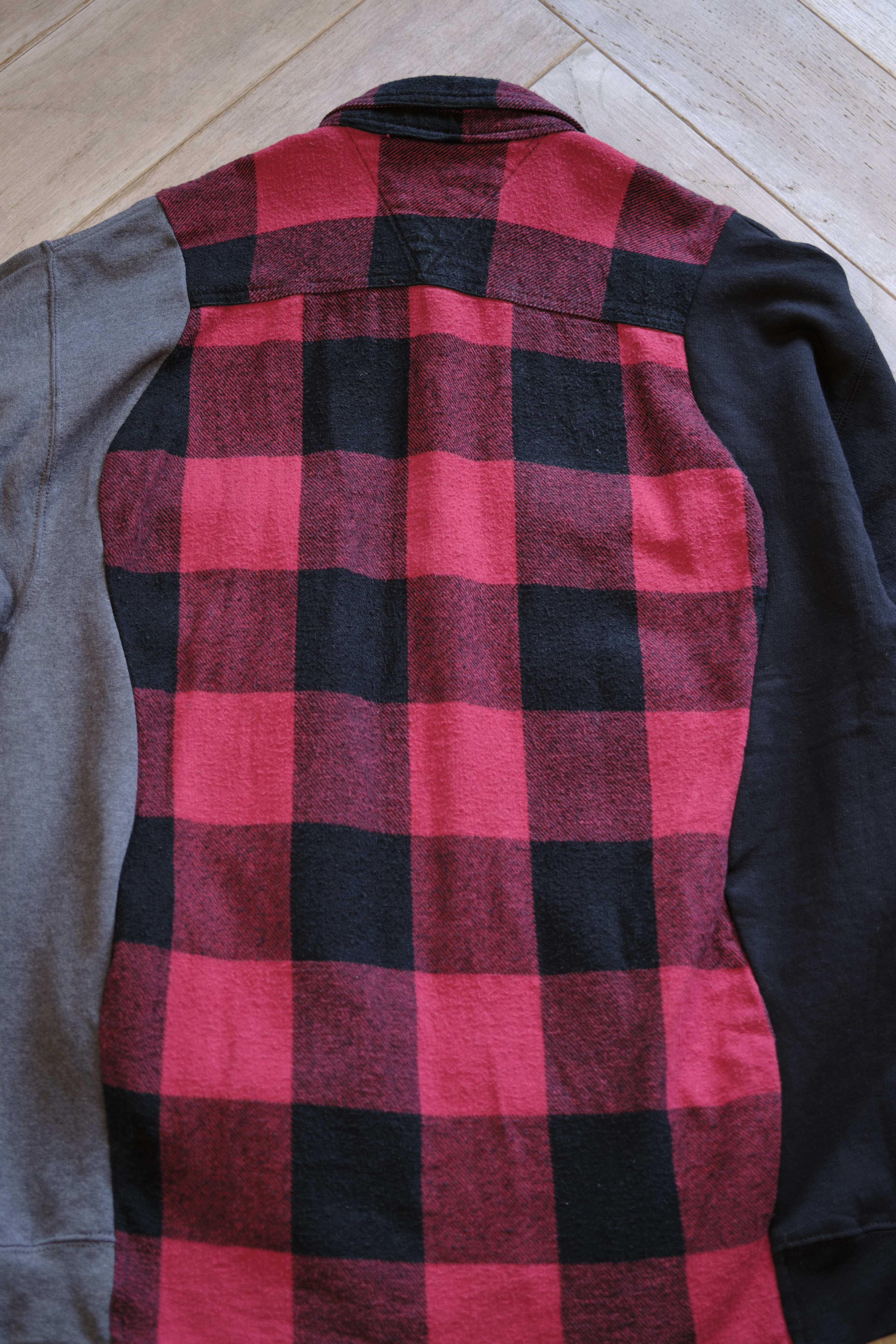 Ⅲ. チェックシャツのカジュアルさとスウェットのラフさが融合したデザインで、ジャケットのインナーにもライトアウターにも使える、ストリートで映える一着。