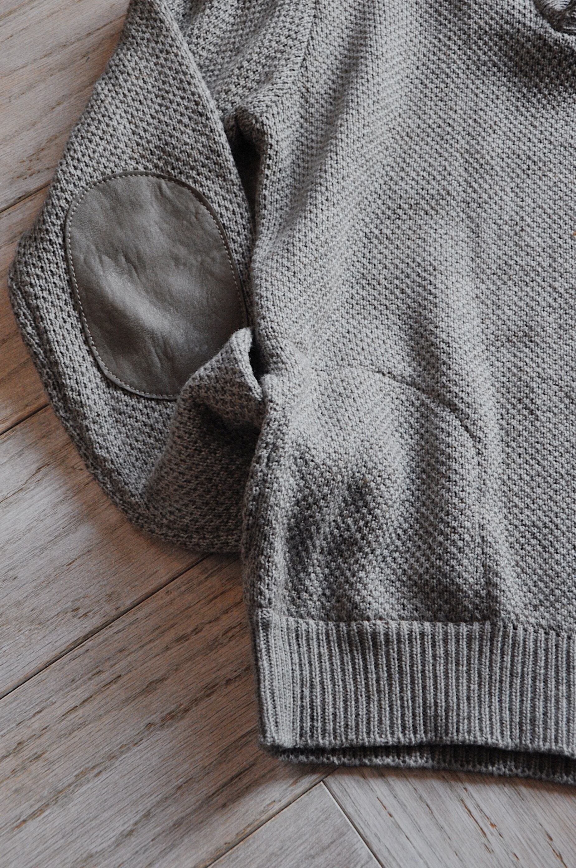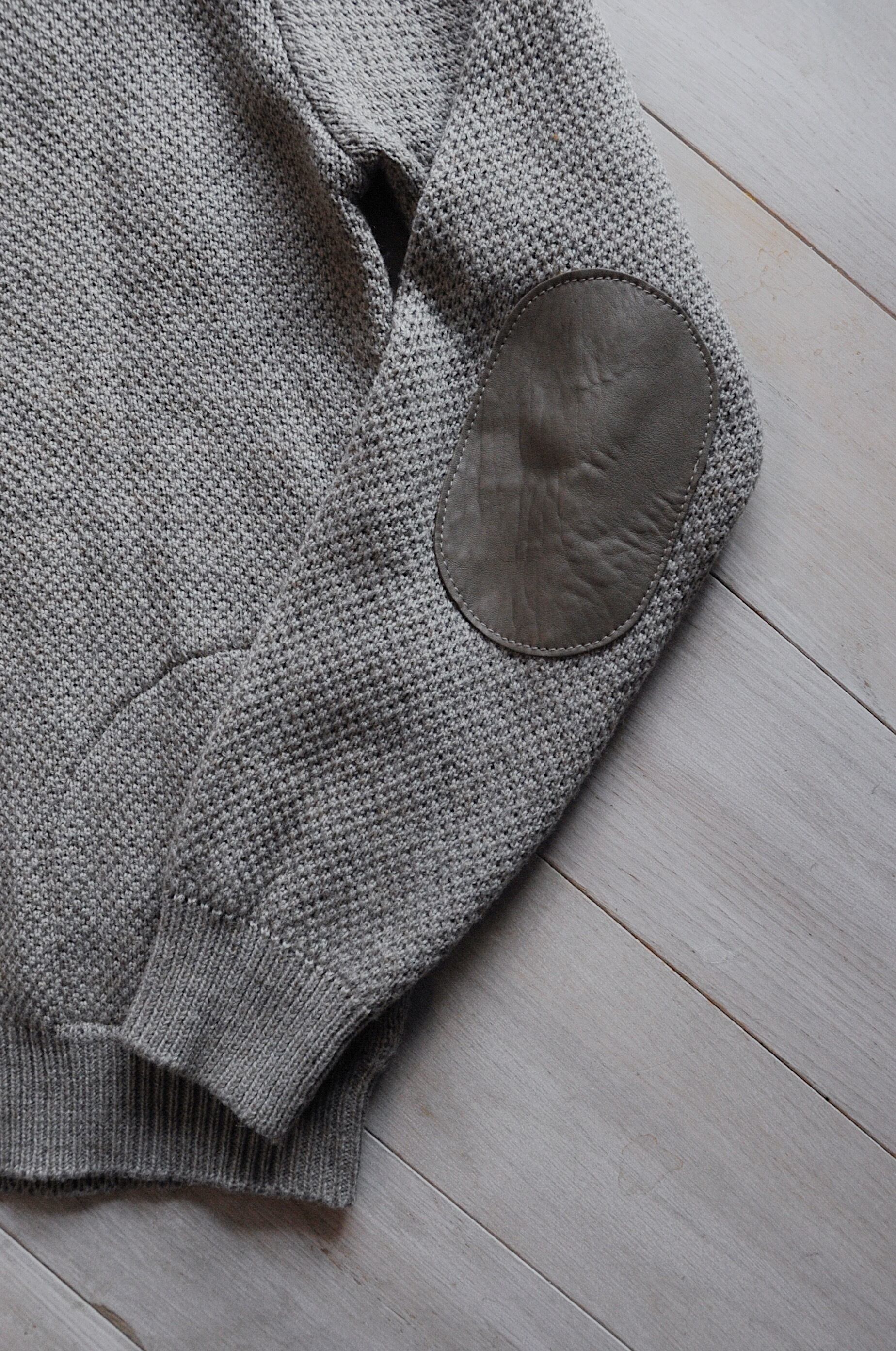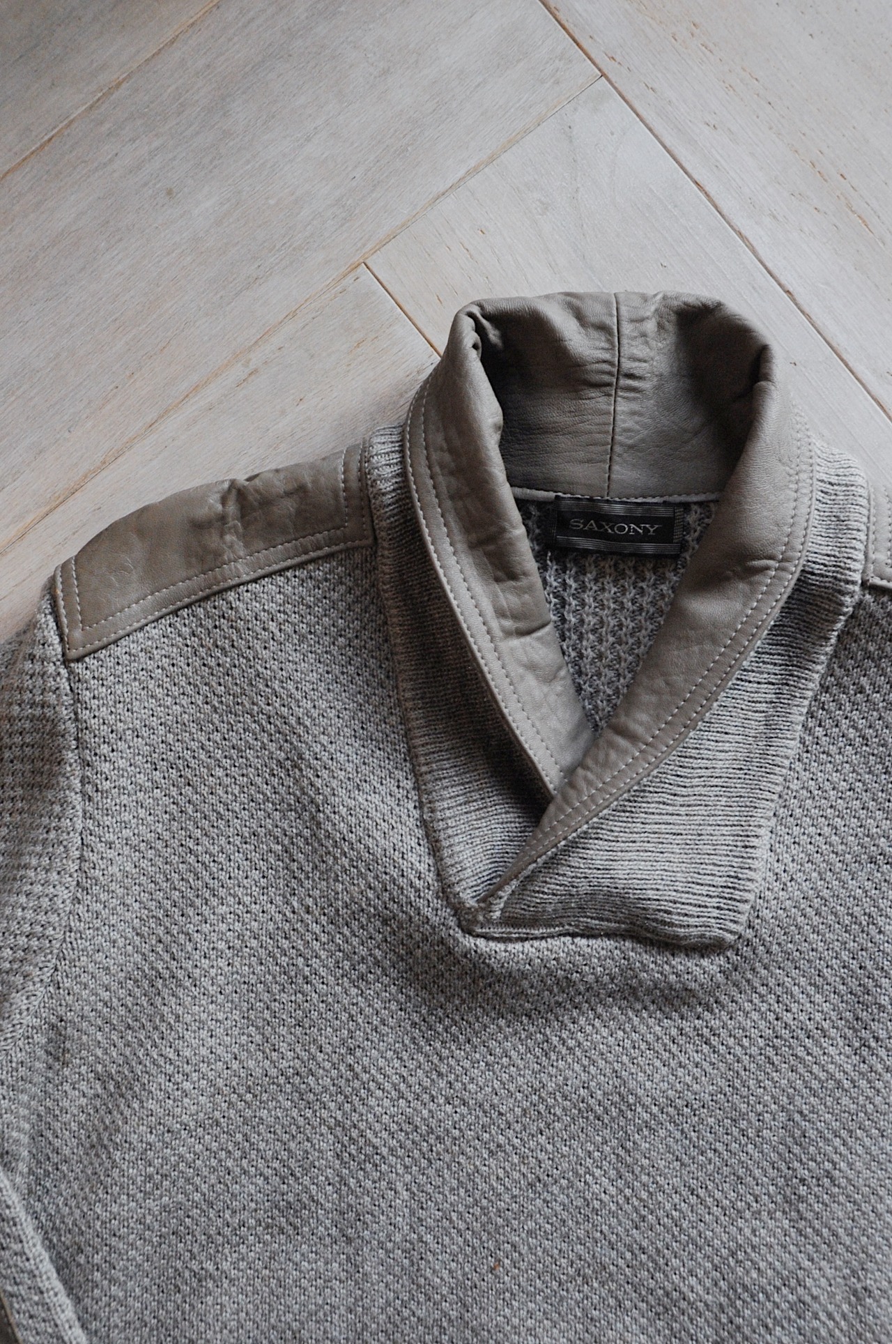 SAXONY ; PATCHWORKED LEATHER KNIT [GRY]
